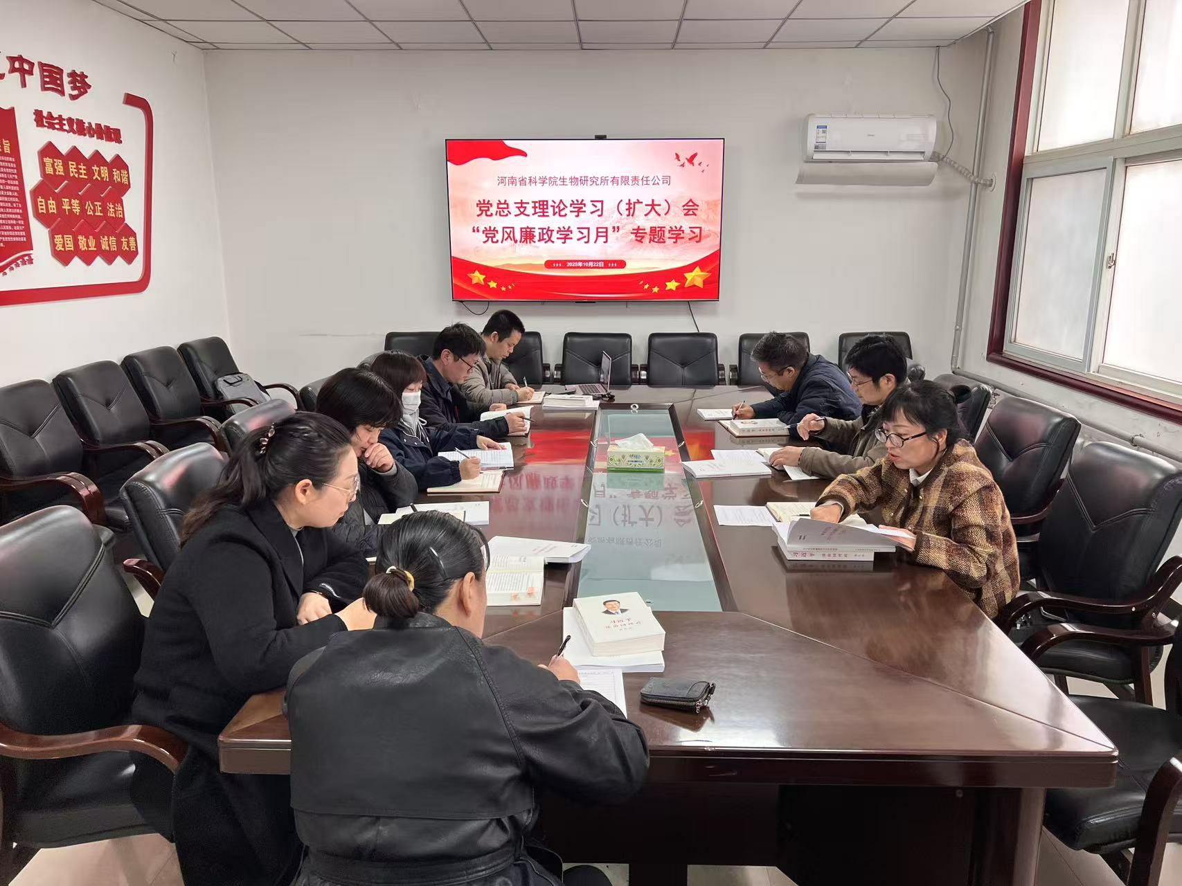 会上由专人领学了《习近平谈治国理政(第五卷)》第一章“以中国式现代化全面推进中华民族伟大复兴”和河南省科学院2025年党风廉政学习月学习材料专题二“聚焦招投标领域”。